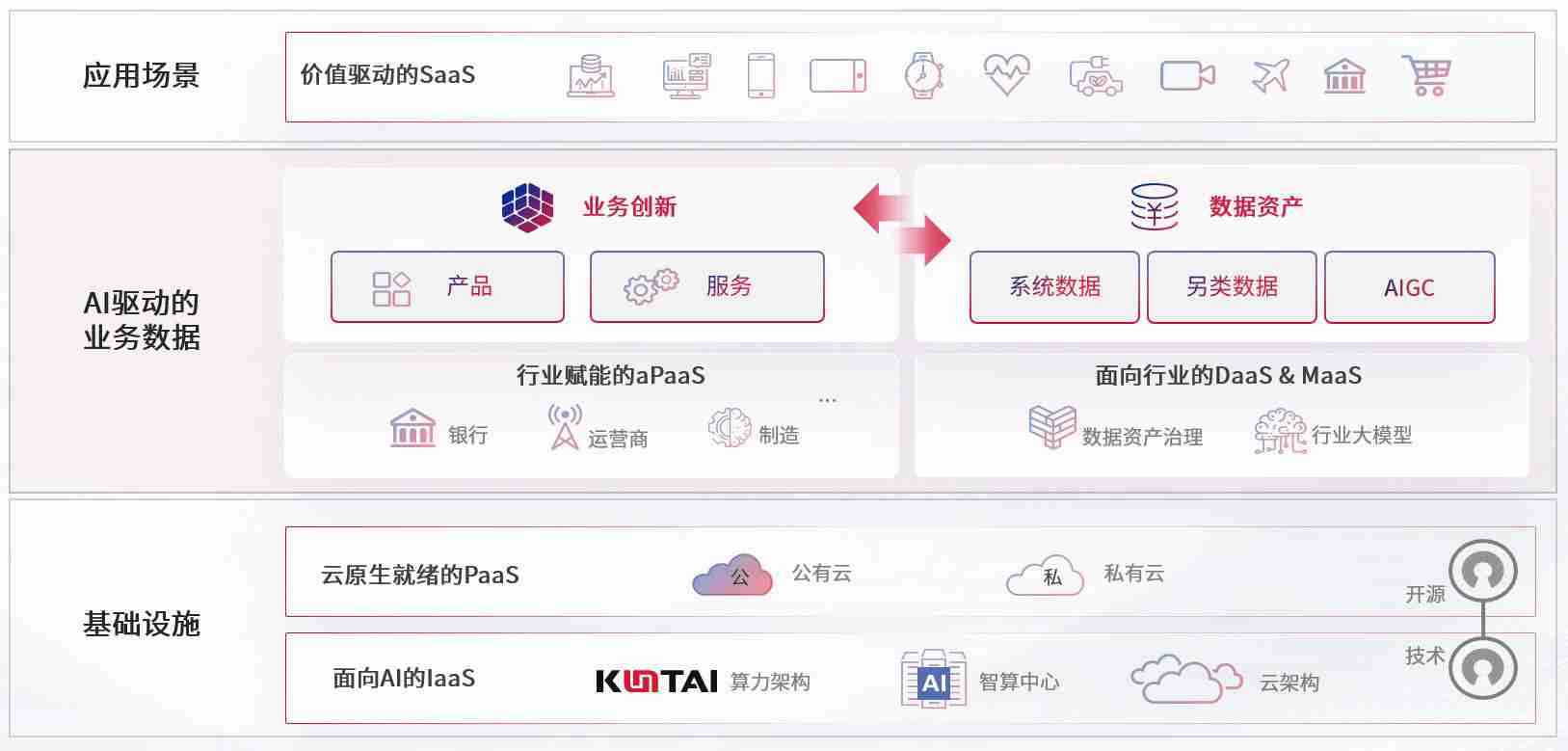 数字时代,,围绕企业数字化转型的关键要素,,,,KDPAY钱包数码开创性的提出数云融合战略和技术体系框架,,着力在云原生、、、数字原生、、、AI原生和信创产业上架构产品和服务能力,,,,为处在不同数字化转型阶段的快消零售、、、、汽车、、金融、、、、医疗、、、政企、、、、教育、、、、运营商等行业客户提供泛在的敏捷IT能力和融合的数据驱动能力,,,,构建跨界融合创新的数字业务场景和新业务模式,,助力企业级客户建立面向未来的核心能力和竞争优势,,,全面推动社会的数字化、、智能化转型升级。。。